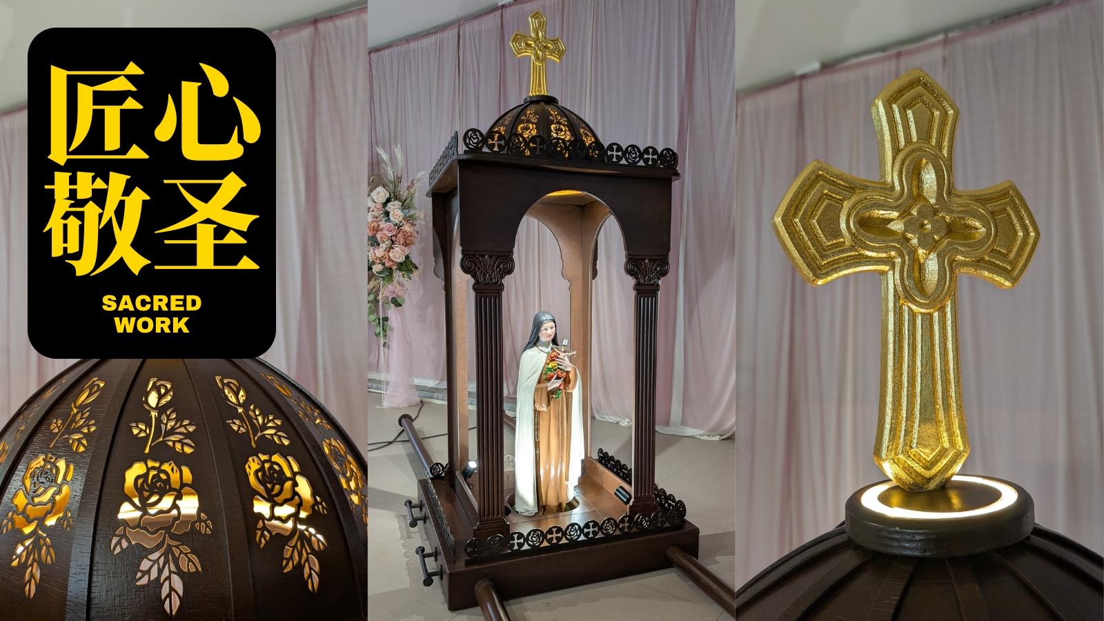 Components for pegboard storage systems, room dividers, decorative cabinet doors, religious altar features, and more.